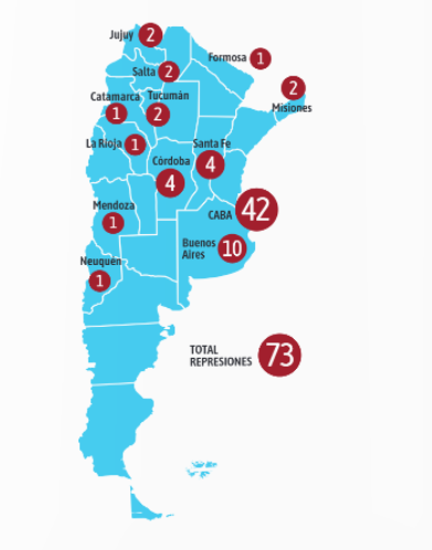 Mapa del Monitor de Respuestas Represivas Estatales o para estatales a la Protesta Social en la Argentina del Instituto de Estudios y Formación de la CTA Autónoma